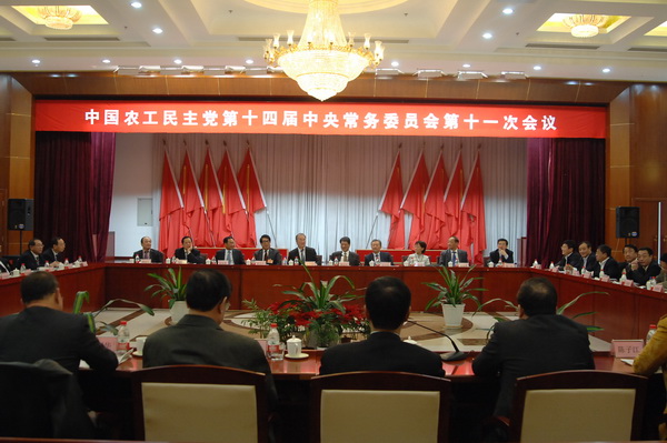 中国农工民主党第十四届中央常务委员会第十一次会议3月9日在北京举行。会议强调,农工党要认真学习贯彻“两会”精神,紧密围绕“十二五”规划积极建言献策,为全面建设小康社会做出新的贡献。全国人大常委会副委员长、农工党中央主席桑国卫主持会议并讲话。全国政协副主席、农工党中央常务副主席陈宗兴出席会议。
