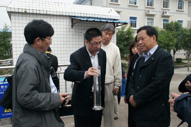 在万州区调研期间,刘晓峰一行实地考察了陈家坝堤防工程、区环境监测站、万州经开区化工园应急指挥中心、明镜滩污水处理厂、垃圾压缩中转站、消落区生态环境整治工程,听取了万州区水环境保护情况汇报。了解到万州区已建成的3座城市生活污水处理厂和7座镇乡污水处理厂运行正常,城区污水集中处理率达86%,城市垃圾无害化集中处理率达100%。工业废水排放达标率为98%以上,刘晓峰对万州在经济持续高速增长和城市快速扩张的背景下,确保了库区水环境质量稳中趋好给予充分肯定。