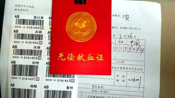 农工党南通市文教支部党员黄瑛俊第8次参加无偿献血