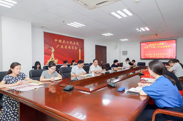 2024年7月23日下午,农工党广东省委会机关召开政治理论学习会,认真学习习近平总书记在中共二十届三中全会上的重要讲话精神,学习《中共中央关于进一步全面深化改革、推进中国式现代化的决定》和《中国共产党第二十届中央委员会第三次全体会议公报》,贯彻落实全省干部大会和广东统一战线大会精神。省委会专职副主委陈景勇出席并讲话,秘书长刘炬出席学习会。
