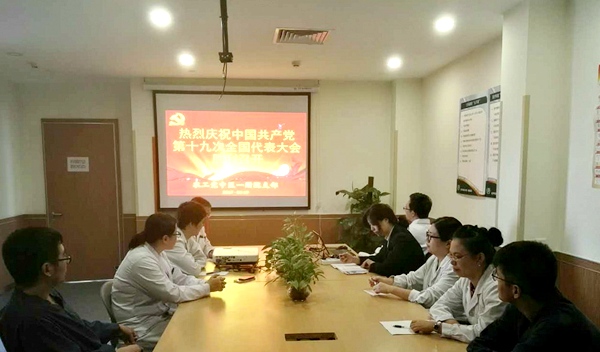 20171018日上午,中国共产党第十九次全国代表大会胜利召开。按照农工党天津市委会的要求,农工党天津市中医药大学第一附属医院支部组织党员观看中国共产党第十九次全国代表大会开幕会。1019日上午,支部召开党员大会,集中学习习近平总书记所作的十九大报告并进行了讨论。会议由支部主委于勇主持。