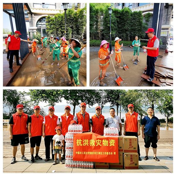 第5号洪峰至8月20日6时过境江津城区,给沿街商铺、机关企事业单位造成了不小的损失,部分地区进水3米以上,积淤泥1米左右。灾后救援,农工党人继续“战”在前头。在洪峰来临前、来临中多次亲临现场指挥抢险救灾的基础上,8月20日,随着洪水逐渐退去,由洪水冲来的淤泥、杂物等一一裸露在外,灾后清淤和消毒工作任务艰巨。农工党重庆市委副主委、江津区工委、副区长吴晓琳第一时间,查看灾情、了解情况、制定措施,组织力量、安排布置,为让居民群众能有一个干净、整洁的环境,为帮助受灾群众尽快恢复正常生产生活秩序,分时分段、抢时间、抢进度,对临江路面开展清淤工作,以避免积水和淤泥堆积影响行人、车辆通行;对受淹门面、背街小巷、低洼地带,有序开展环境垃圾清理、卫生消杀防疫等洪峰过境后恢复重建工作,科学有序恢复生产,重建家园。