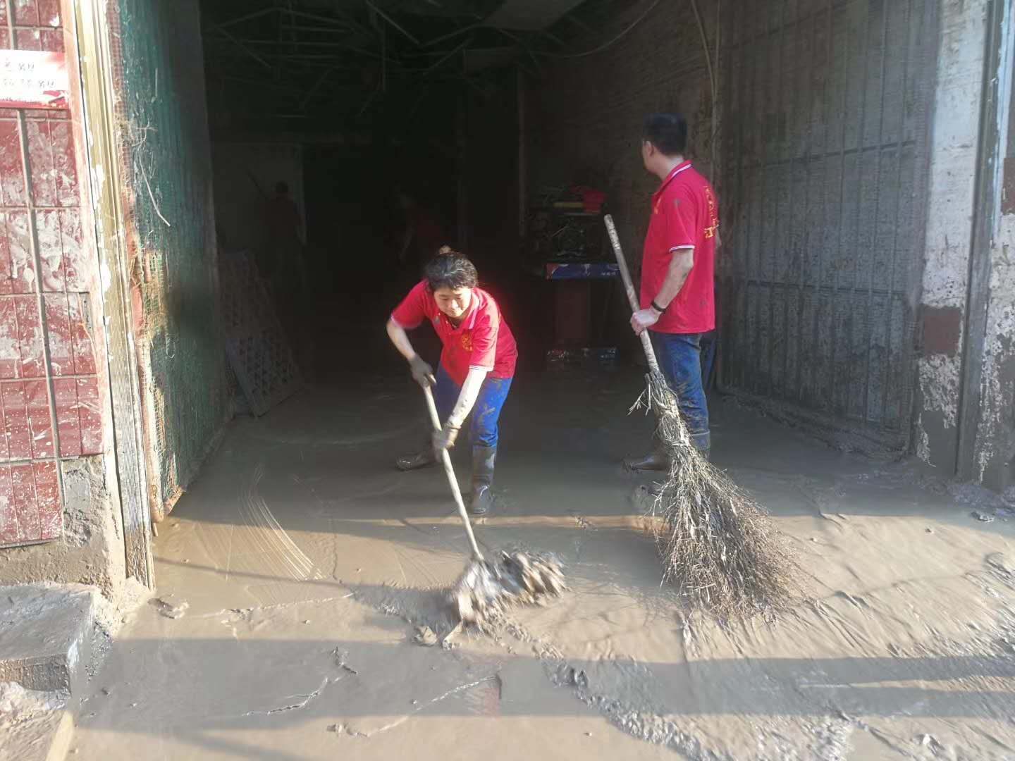 8月21日,当工委得知白沙镇经过广大干部、群众连续两天清淤泥工作,但仍有近三条街道淤泥未清理完结,部分小区因无法机械操作,小区内还有近一米的淤泥,需要大量的人力,工委组织部分党员自愿者,驰援白沙,开展清淤泥工作。