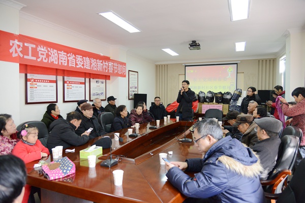 1月24日上午,省直综合基层委还赴建湘新村社区开展了节前慰问社区困难居民活动。慰问组一行赴湖南省人民医院马王堆院区看望了104岁的抗战老兵黄福荫老人,在建湘新村社区,为困难群众发放了价值1.1万元的米、油、牛奶、羽绒服、棉被等物资以及农工党湖南省委书画院艺术家们书写的春联。湖南海源医疗科技股份有限公司董事长姜志华带领企业员工为社区居民开展了健康筛查活动,免费发放了价值2.8万元的检测仪器70套。