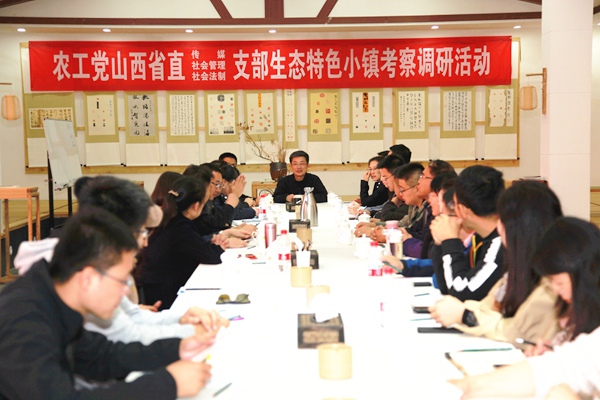 2019年10月19日,农工党山西省直属传媒支部、社会管理支部、社会法制支部组织党员赴太原市郝庄镇董家庄生态休闲田园综合体(森栖小镇)开展生态特色小镇考察调研活动。农工党山西省委会专职副主委、秘书长、组织部部长杜宏瑞,省委会办公室二级调研员任红梅应邀参加了活动。