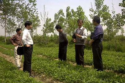 图为近期农工党荆门市委委员、荆门职院药学院院长、药学博士杨希雄同志与县科委同志一起到京山种苗基地为药农进行技术指导。