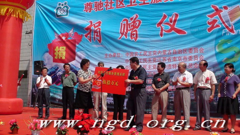 在捐赠仪式上,农工党员、南京尊驰科技开发有限公司总经理贺耀向呼和浩特市清水河县卫生局捐赠了价值50万元人民币的社区卫生服务管理系统软件。这套软件系统,利用计算机技术,以居民健康档案为中心,实现预防、保健、医疗、计划生育技术指导、健康教育六位一体卫生服务的职能,使社区卫生服务管理实现信息化、数字化,全面提高了社区卫生服务中心的竞争力。