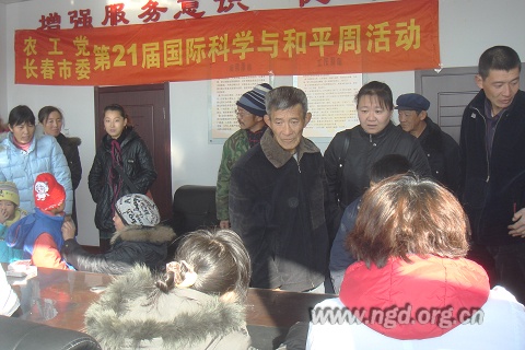 为更好地服务“三农”,推进社会主义新农村建设。11月17日,农工党长春市委会在二道区英俊乡胡家村开展了第21届国际科学与和平周活动。活动上,吉林省人大常委、农工党长春市委会主委侯治富代表长春市农工党,向胡家村捐赠了价值近万元的药品,我党的医疗专家组还为80余位当地村民提供了医疗咨询服务。另外,长春市农工党还将根据义诊情况,组织当地群众到长春市防疫站注射甲流预苗。