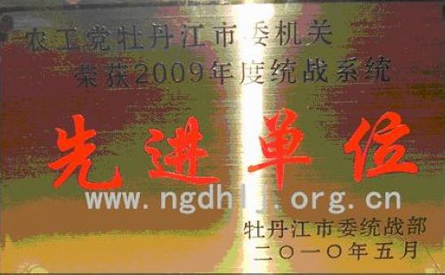 近日,农工党牡丹江市委会机关被中共牡丹江市委统战部授予“2009年度市直统战系统先进集体”称号。 2009年,农工党牡丹江市委机关认真贯彻落实农工党牡丹江市委的各项决定,努力践行科学发展,充分发挥自身优势,扎实推进各项工作,在捐建道路、参政议政、民主监督、社会服务、和统战宣传等方面取得了优异的成绩。这次喜获殊荣,激励着农工党牡丹江市委团结和带领广大党员,继续开拓创新、锐意进取,为实现牡丹江新一轮追赶跨越做出新的贡献。