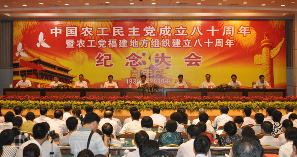 2010年8月17日上午,农工党福建省委在福州隆重举办中国农工民主党成立八十周年暨农工党福建地方组织建立八十周年纪念大会。中共福建省委副书记于广洲到会祝贺并讲话。省人大常委会副主任袁锦贵,省人民政府副省长、九三学社省委主委洪捷序,省政协副主席、中共省委统战部部长张燮飞,省政协副主席陈芸,省政协副主席、民进省委主委张帆,省政协原副主席、农工党省委原主委、省科协主席、中国科学院院士吴新涛出席大会。
