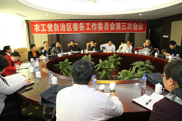 3月19日上午,农工党自治区委各工作委员会第三次会议在呼和浩特市召开,农工党自治区委主委牛广明,副主委云治厚、张伯群、卢计成出席会议。农工党自治区委参政议政工作委员会、医药卫生工作委员会、社会法律工作委员会、文化教育科学技术工作委员会、经济工作委员会、人口资源环境工作委员会、妇女工作委员会、老年工作委员会的主任、常务副主任、秘书长和部分代表参加会议。会议由农工党自治区委秘书长、参政议政工作委员会主任耿豫蒙主持。