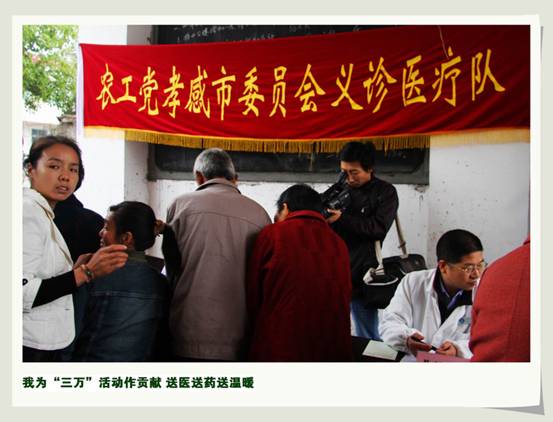 在“万名干部进万村入万户”活动如火如荼深入推进之际,农工党孝感市委员会积极行动起来,发挥自身优势,组织医疗专家举办“我为春耕做贡献送医送药送温暖”义诊活动,把党和政府的关怀与温暖送到基层、送到农户,这是深入贯彻落实中共湖北省委省政府、孝感市委市政府关于“三万”活动有关要求的重要举措,是惠农支农强农的有效载体,是加深同群众感情、做好新形势下群众工作的具体行动。
