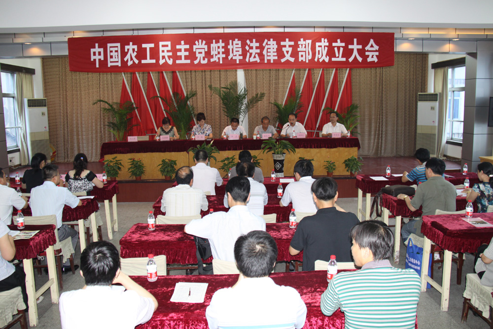 8月3日下午,农工党蚌埠市法律支部成立大会召开。蚌埠市人民政府副市长、农工党蚌埠市委会主委秦武,副主委郑国沁、冯燕娴、李光早出席会议。中共蚌埠市委统战部副部长杨本龙,市司法局党组成员、副局长李勤应邀出席会议并讲话。农工党在蚌市委委员及基层组织负责人参加成立大会。会议由郑国沁主持。