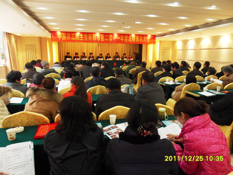 12月25日,农工党衡阳市委会在西湖山庄会议室隆重召开2011年党员大会。来自全市19个支部的140多名党员参加了会议。中共市委统战部副调研员邹文胜,农工党衡阳市委主委、市物价局副局长许云生等应邀参加会议并讲话。会议由农工党市委副主委谢文彪主持。