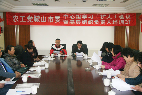 2012年3月17日,农工党鞍山市委在千山温泉职工疗养院四楼会议室举办中心组学习(扩大)会议暨基层组织负责人培训班。农工党市委副主委张丽梅出席会议并讲话,农工党市委委员、各基层支部负责人、市委机关全体同志参加了会议。