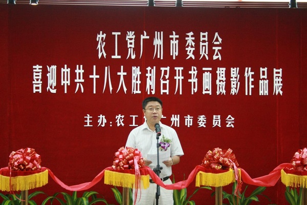 他希望,通过这次书画摄影展,以喜迎中共十八大、农工党十五大为契机,进一步推动农工党广州市委会全体成员继续坚定不移地坚持中国共产党的领导,与中共在思想上同心同德、目标上同心同向、行动上同心同行,认真贯彻落实中共广州市委十届三次会议提出的目标和任务,在推进广州新型城市化发展上围绕中心服务大局,为不断开创农工党广州市委会的新局面而努力奋斗!