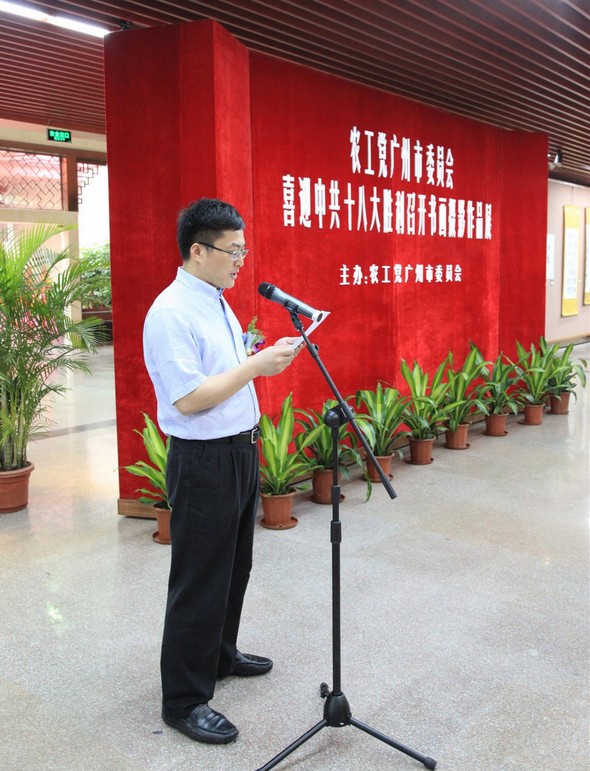 2012年9月21日,农工党广州市委会在广州文化公园展览中心举行“喜迎中共十八大胜利召开书画摄影作品展”开幕式。农工党中央委员、广东省委会副主委、广州市委会主委、市政协副主席余明永,原市人大副主任、原市农工党主委黄鸿钧,原市政协副主席、原市农工党主委罗惠娟、林生珠,市政协副秘书长范松青,市工商联副主席尹宏亮,农工党市委会副主委蔡国强、江英桥,市各兄弟民主党派、工商联、对口联系单位等单位的领导应邀出席开幕式。