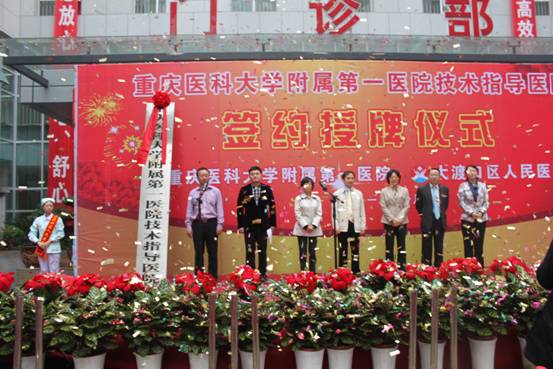 仪式由区政府副区长毛伟主持。重医附一院与区医院签订了重庆医科大学附属第一医院技术指导医院合作协议;农工党市委副主委、重医附一院院长任国胜和区委书记盛娅农共同为指导医院揭牌。
