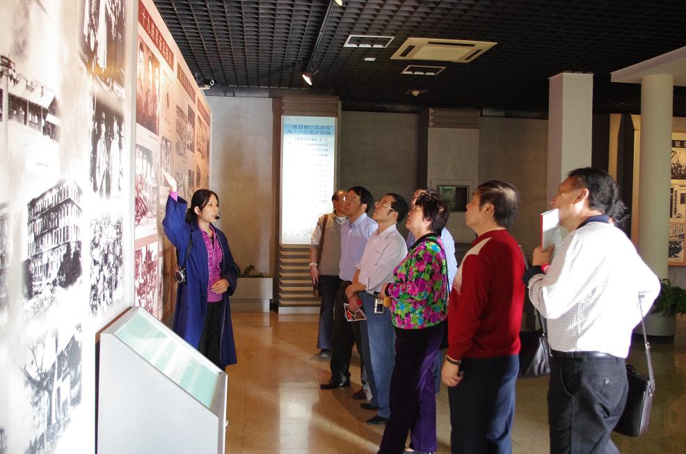党史研究专题组首先来到座落于上海宝山临江公园内的淞沪抗战纪念馆。成员们一边聆听讲解员陈述,一边仔细观看馆内陈列的珍贵文物及史料,在回顾当年上海人民与中国军队英勇抵抗侵华日军的顽强御辱史的同时,认真查找与农工党史有关的史迹资料。1939年1月28日,在上海遭到日军入侵的危急时刻,我党老一辈领导人黄琪翔果断策动黄埔军校人员,组织“中国国民党临时行动委员会”(农工党前身)成员组成义勇军,参加了“一·二八”淞沪抗战,与国民党19路军一起同仇敌忾,共御外侮。可惜馆内尚无这部分史料,但小组成员找到了我党老一辈领导人章伯钧、罗任一等在 “上海各界纪念一·二八抗战十五周年大会”上的签名手迹,其中章伯钧分别代表民盟和农工党在两处签名。