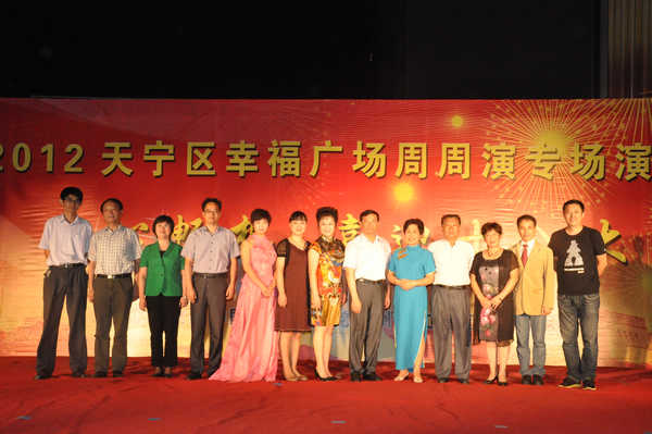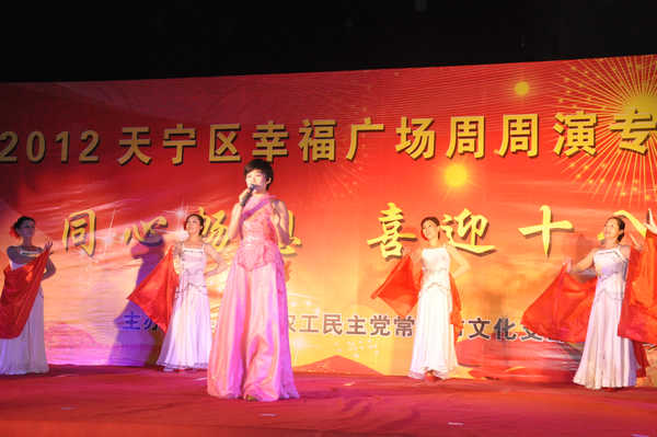 由农工党常州市委主办、文化支部独立承办的“同心畅想喜迎十八大”专场文艺晚会,于日前在市银河湾电脑城广场成功举行。这是一台由农工党文化支部以幸福广场周周演的活动形式自编、自导、自演的节目。市政协副主席、农工党常州市委主委陈建国出席晚会并致辞,市委统战部部长张跃、副部长章卫忠,市各民主党派负责人,农工党常州市委副主委马正华、朱静雅以及农工党常州市委委员和各基层组织负责人出席了晚会,500多名市民现场观看了演出。