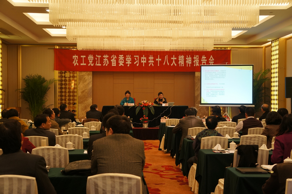 2012年11月16日下午,农工党江苏省委在宁举办学习中共十八大精神报告会,特邀中共江苏省委党校徐民华教授作专题报告。农工党江苏省委领导班子成员出席。 江苏省政协副秘书长、农工党江苏省委副主委肖渡主持报告会。她指出,中共十八大胜利召开是全国人民政治生活中的一件大事。中共十八大报告既顺应时代潮流、体现中国特色,又彰显全党智慧、符合人民意愿。报告旗帜鲜明、路径清晰、目标明确、部署全面、举措强劲、凝心聚力,为民主党派的自身发展和服务科学发展、切实履行参政党职能、发挥参政党作用指明了新方向、制定了新目标、提供了新方法、建立了新坐标、搭建了新平台,必将积极促进农工党江苏省委围绕全面建成小康社会奋斗目标,为多党合作事业的良性发展和江苏又好又快推进“两个率先”,开展新实践、做出新贡献。 主持人还在会上传达了江苏省政协副主席、中共江苏省委统战部部长罗一民在党外人士学习中共十八大精神座谈会上的讲话精神。他要求,全省农工党员要充分认识中共十八大的重要意义,切实把各级组织、广大党员的思想和行动统一到中共十八大精神上来;要深刻领会中共十八大关于统一战线的重要论述,在完善自身发展的基础上,为推进多党合作事业的蓬勃发展尽心尽力;要准确把握全面建成小康社会的新要求,为促进社会主义“五位一体”建设和江苏“两个率先”凝聚力量、发挥作用;要自觉坚持以中共十八大精神为引领,以建设一支与中国共产党荣辱与共、肝胆相照的参政党队伍为目标,全面加强自身建设。 农工党江苏省委在宁省委委员、省人大代表、省政协委员、省委各专委会主要负责同志,以及在全省各级人大、政协、政府担任副处级以上职务的农工党员近百人参加了报告会。(郭瑞)