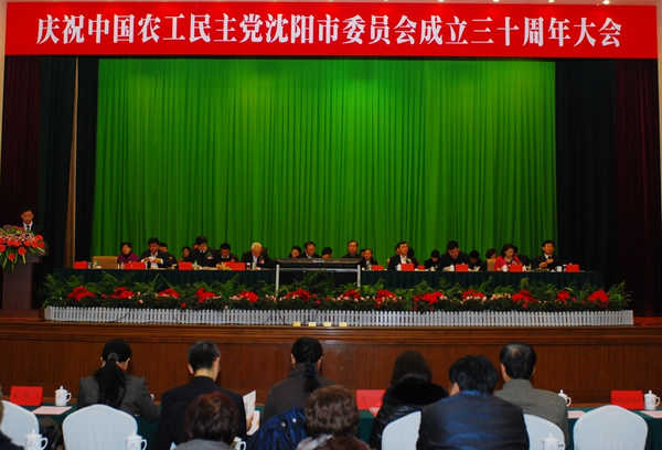11月15日,农工党沈阳市委在辽宁大厦隆重召开庆祝成立30周年大会。省政协副主席、农工党辽宁省委主委唐建武,市委副书记邢凯应邀出席大会并讲话。农工党辽宁省委专职副主委朱航,市委副秘书长李建国,市委统战部部长汪涛、副部长李书鲤、韩燕子应邀出席大会。农工党沈阳市委副主委李铁男、王莉、张麓曾、杨向红、赵春杰、郭少武、孟令山与全市各基层组织负责人和党员300多人参加了庆祝大会。