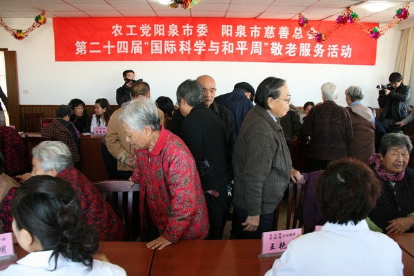 为庆祝中共“十八大”的胜利召开,响应农工党中央关于开展第二十四个“国际科学与和平周”活动的号召,日前,农工党阳泉市委联合市慈善总会,组织20余名医疗专家,来到市民政局老年颐养中心,开展敬老爱老义诊活动,为老年人进行义诊咨询和健康检查。