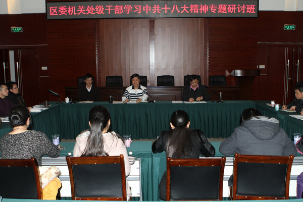 图为:农工党广西区委会机关处级干部学习中共十八大精神专题研讨班会场