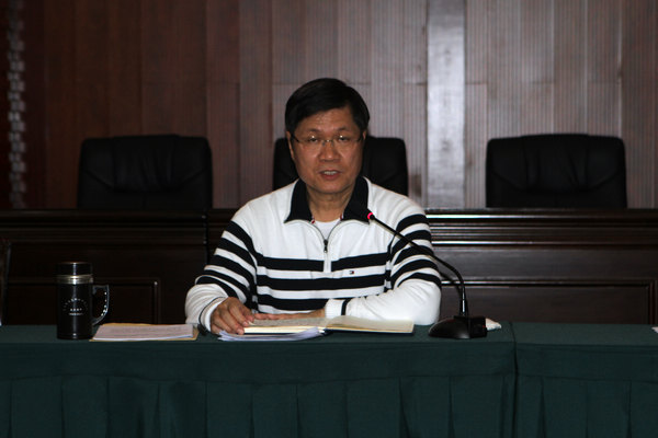 图为:农工党广西区委主委彭钊出席会议并讲话