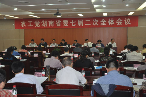 龚建明代表常委会向全会作工作报告。在报告中,他从5个方面对省委工作进行了总结。1、坚持正确政治方向,思想建设全面加强。省委不断创新形式,加强思想政治工作,广大党员的政治共识更加坚定,多党合作的思想基础更加巩固。通过理论学习和研究,各级领导班子成员和广大党员接受中国共产党领导的自觉性得到了增强,思想理论水平不断提升。继续把树立和践行社会主义核心价值体系、同心思想作为主题学习内容,通过举办座谈会、研讨会等形式,积极开展一系列主题学习实践活动。全省宣传工作呈现出可喜的局面,各种报道、稿件被中央级媒体、刊物、网站采用20余条(次),被省级采用30余条(次)。圆满地完成了《农工湘讯》全年四期编辑出版工作。网站有了很大的提升,全年报道多达400多条,可读性进一步增强,扩大了农工党的社会影响。2、顺利完成政治交接,组织建设稳步推进。注重和谐团结,顺利完成各级组织换届工作。去年5月,农工党湖南省第七次代表大会按时召开,顺利完成了换届工作。选举产生了省委委员66名,常委22名、主委班子7人,还选举了25名党员作为出席农工党“十五大”的代表。去年12月,农工党“十五大”召开,省委7名党员当选为中央委员,1名党员当选为中央监督委员会委员,其中省委主委龚建明同志当选为中央副主席。去年7月、11月,益阳、怀化市委分别完成了换届。顺利实现了政治交接。党员发展健康有序。截止去年12月底,全省共有党员5900余人,下设12个市级组织、4个县级组织和274个基层组织。党员的知识结构进一步优化,全省党员中,医药卫生界3320人,占56.3%,教育界1338人,占22.6%,科技届416人,占7.1%,其它界别826人,占14%。各基层组织根据自身特点,开展了一系列丰富多样的活动,党员的凝聚力和活力进一步增强。3、发挥智力资源优势,参政议政卓有成效。坚持围绕中心,服务大局,参政议政和民主监督工作取得了新成绩。积极参加中共湖南省委、省政府及有关部门举行的协商会、座谈会、情况通报会以及各种视察、检查活动20多次,紧紧围绕全省“十二五”规划的实施、“四化两型”建设、重大决策和重要人事安排等提出意见和建议70多条。其中,对《2013年省政府工作报告》提出3条修改意见都被采纳。积极参加中共湖南省纪委、省高级人民法院和省人民检察院举行的情况通报会,就我省的廉政建设、法治湖南建设等问题发表意见。省委提出的意见和建议,受到了有关部门的关注和采纳。在2013年召开的省政协十一届一次全会上,省委共提交10件集体提案,其中2件提案,得到了湖南卫视和红网等多家媒体的重点关注和专题报道。在联组讨论会上,熊波、饶育蕾代表省委的发言,得到了与会领导的高度肯定和赞扬,新浪、搜狐、中央网络电视台网等多家媒体重点报道,许多媒体和网站争相转载。全国“两会”上,省委全国人大代表、政协委员共提交议案、提案25件,代表、委员们积极履职,提案、议案紧扣民生,得到广泛关注和好评。认真落实农工党中央社情民意信息工作会议精神,截止去年12月底,共收到各级组织上报的社情民意信息169件,经过省委的整理,其中,22件被农工党中央《信息专报》采用,1件被省政协采用,2件被湘声网采用。信息总量和被《信息专报》采用量两项指标都在全国排名前5位,省委荣获农工党中央2012年度“全党反映社情民意信息工作先进集体”荣誉称号。4、突出定点帮扶,社会服务取得实效。按照定点、集中、长期服务及关注民生、关注农村、关注环境保护和生态文明的宗旨,继续打造定点社会服务基地——宁乡县泉柳村。争取资金35万元,支持该村水利、道路建设;支持该村卫生室体检设备2套;组织该村领导班子赴华容县学习垃圾处理先进经验,积极在该村推进垃圾生态处理模式。泉柳村的村容村貌发生了很大的变化,村民得到了实惠。泉柳村成为“农工党湖南省委新型能源推广应用示范村”,创出了农工党社会服务的品牌。参与省统一战线联合社会服务点平江县的定点帮扶工作,在平江县妇幼保健院开展义诊,培训医务人员20多人(次),捐赠设备、药品折合人民币200多万元。今年,该院正式挂牌成为省委社会服务定点帮扶医院。省委积极组织骨干党员参加由中共湖南省委统战部、省教育厅主办,各民主党派省委和无党派人士代表参与的湖南省武陵山区同心温暖工程活动,捐款40万元,屈东森和费岳湘两位党员主动向活动各捐款20万元,用于支持武陵山区贫困学生。坚持品牌效应,积极开展“两周”活动。去年6月,省委在通城商业广场开展“健康与环境宣传周”活动,倡导人与自然的和谐,倡导健康的生活方式。各市委也开展了系列活动。去年11月,在通程商业广场开展第二十四届“国际科学与和平周”活动,向市民发放宣传资料,号召大家合众人之力,保护湘江,打造“东方莱茵河”。衡阳、郴州等市委根据省委安排,也同时开展了“国际科学与和平周”活动。发挥界别优势,坚持开展义诊送医送药活动。去年9月,省委组织省人民医院党员26人赴平江县长寿镇,开展了一次主题为“传承百年仁术精神,情系三湘父老乡亲”的义诊活动;去年 11月,为庆祝中国共产党十八大胜利召开,省委组织湘雅医院党员专家教授20余人,利用周末时间到浏阳大围山镇卫生院开展义诊活动,一天共接诊患者约500余人,免费发放数万元药品。201