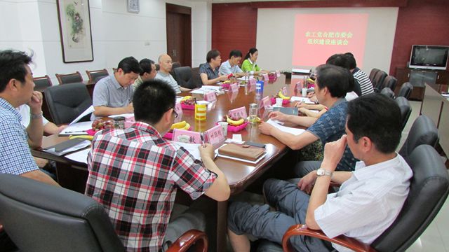 为做好组织发展工作,7月26日,农工党合肥市委召开组织建设座谈会。合肥市政协副主席、农工党市委主委储昭平出席会议并讲话。中共市委统战部党派处处长刘涛应邀参会。会议由农工党市委副主委林莉主持。市农委、科技局、国土局、水务局、园林局、卫生局、计生委、环保局、畜牧水产局、粮食局、旅游局和地震局等12家单位的组织工作负责人参加会议。
