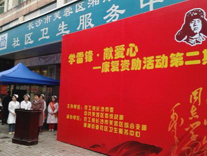 (通讯员易介兵)2014年3月20日上午,为把学习雷锋精神与建设同心社区紧密联系起来,农工党长沙市委、芙蓉区委统战部在湘湖社区卫生服务中心联合主办“学雷锋·献爱心——康复资助”活动。