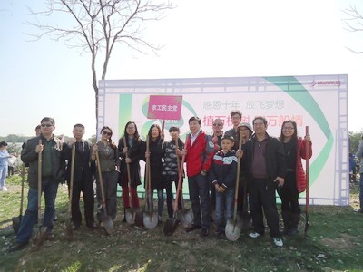 2014年3月22日上午,梅村新韵北路彩旗招展,由中共无锡市新区统战部主办、江苏锦绣前程木业有限公司承办、农工党无锡市委会新区总支协办的“感恩十年,放飞梦想”第十届“植万棵树,回万般情”大型义务植树活动正在举行。农工党无锡市委会新区总支部分党员参加了活动。活动中,大家拿起铁锹,栽下一棵棵树,培了一抔抔土。