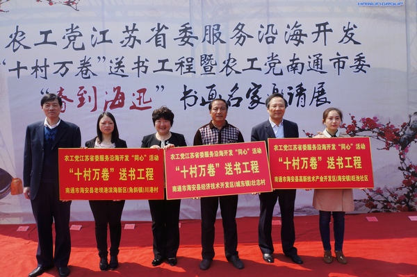 2014年4月30日, 农工党江苏省委会在南通市海安县举行农工党江苏省委会沿海开发“十村万卷”送书工程活动仪式,江苏省政协副秘书长、农工党江苏省委会专职副主委肖渡,农工党江苏省委会联络处处长王夫玉,南通市政协副主席、中共南通市委统战部部长殷雄,南通市政协副主席、农工党南通市委主委陈宗义,南通市委统战部副部长朱德炎,农工党南通市委副主委吴鸿飞,海安县县委常委、宣传部长王炜,海安县政协副主席、统战部长储开泉以及南通和海安各界人士、受赠村村民代表百余人参加了活动。