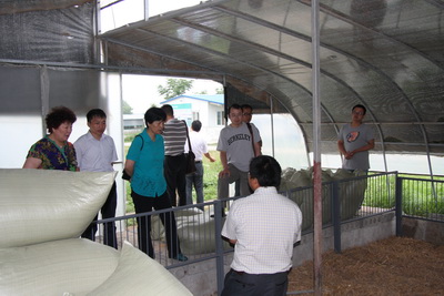 随后,调研组一行实地参观考察了该基地动物科学基地的发酵床养猪基地、万只羊场、万笼位种兔养殖场等地。传统的养猪粪尿污染非常严重,对地面、空气、水源产生严重的影响。而发酵床养猪通过参与垫料和牲畜粪便协同发酵作用,快速转化生粪、尿等养殖废弃物,消除恶臭,抑制害虫、病菌,同时,有益微生物菌群能将垫料、粪便合成可供牲畜食用的糖类、蛋白质、有机酸、维生素等营养物质,增强牲畜抗病能力,促进牲畜健康生长。