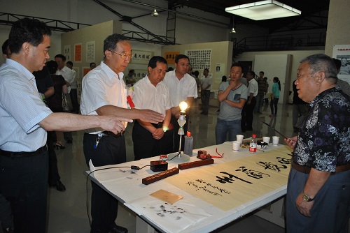 甘肃省政协副主席、农工党甘肃省委会主委栗震亚出席开幕式。省内外的20多位书画界名家现场挥毫泼墨,抒发着对甘肃省贫困地区的关爱之情。