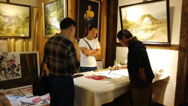 随后,书画支部的画家们人人动手,开展现场笔会,完成精美作品共计16幅,全部捐赠给上里古镇景区,受到了相关领导及当地同仁的好评。(蒋野秋)