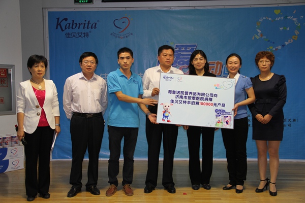 本次活动共向济南市按摩医院捐赠了价值10万元的佳贝爱特羊奶粉。段青英亲手向济南市按摩医院的脑瘫患儿赠送了奶粉。济南市残联书记、理事长孙君涛向捐赠方佳贝艾特羊奶粉授予了感谢锦旗。