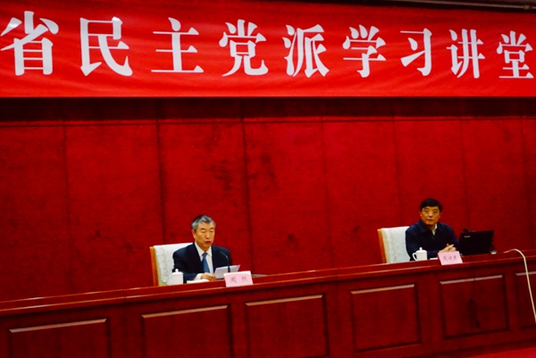 2014年10月17日上午,江苏省政协副主席、农工党江苏省委会主委、中科院南京分院院长周健民在山西省民主党派学习讲堂作《土壤与健康》讲座。山西省人大常委会副主任、农工党山西省委会主委周然主持讲座。