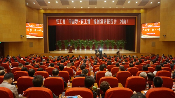 2014年10月18日上午,农工党中央“中国梦•农工情”演讲团第一组巡回演讲报告会在河南省郑州市举行。河南省政协副主席、农工党河南省委会主委高体健和中共河南省委统战部副部长赵太安出席报告会并先后致辞。农工党中央宣传部部长石光树主持报告会。