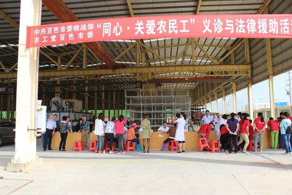 此次活动是农工党百色市委会今年第二次开展“同心·关爱农民工”健康体检与法律援助活动,中共百色市委统战部、农工党百色市委会、中共田阳县委统战部及田阳县头塘镇的有关领导,参加了本次活动。