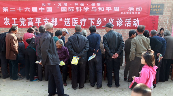 2014年10月26日,农工党晋城市委会组织十多名医疗专家在高平市回山村开展了主题为“和平•发展•环保•健康”的第二十六届中国“国际科学与和平周”活动。晋城市政协副主席、农工党晋城市委会主委陈改玲,高平市副市长、农工党晋城市委会副主委王胜利等参加了活动。