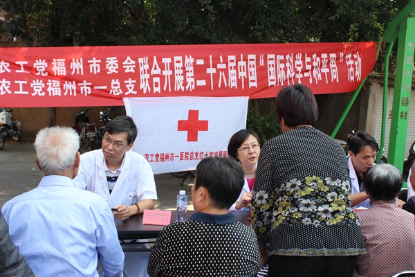 2014年10月23日,农工党福州市委会联合市政协经建委、农工党福州市一总支前往闽清县白樟镇开展第二十六届“国际科学与和平周”活动。在农工党福州市委会主委郑新清的带领下,开展了义诊咨询、扶贫助困等活动。