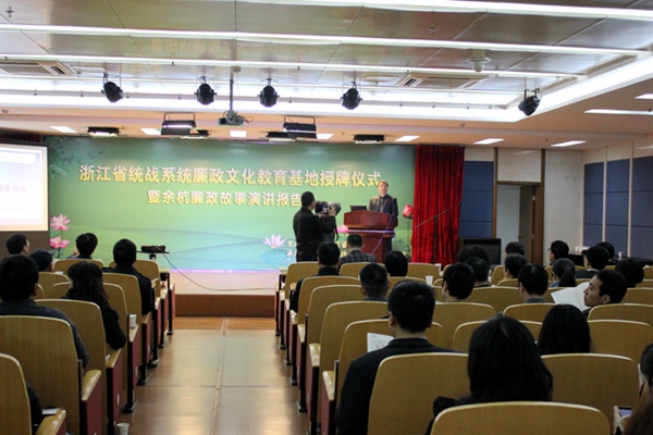 2014年11月12日,由农工党浙江省委会主办,余杭区委统战部、余杭区总支承办的省统战系统廉政文化基地授牌仪式暨余杭廉政故事演讲报告会在临平举行。省委统战部常务副部长金长征出席报告会并为余杭总支廉政文化教育基地授牌。农工党浙江省委会专职副主委陆国钦主持报告会。