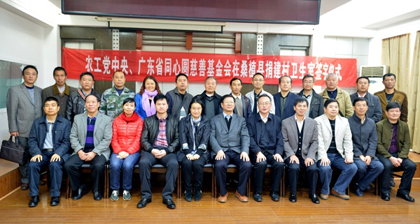 农工党广东省委会专职副主委刘启德、农工党湖南省委会专职副主委蒋秋桃、农工党中央社会服务部经济科技法律处处长张铭彩、农工党广州市委会秘书长侯鹿、农工党广州市委会常委、广东省同心圆慈善基金会副理事长赵刚、广东省同心圆慈善基金会秘书长刘勇、农工党张家界市委会主委覃仕斌、农工党湖南省委会社会服务处处长邱现平、农工党张家界市委会副主委张赟、桑植县副县长陈海涛、桑植县委统战部副部长彭长明以及县卫生局领导、7个受援建村村委会负责人、承建建筑公司负责人参加了签约仪式。