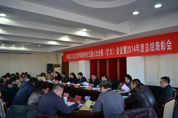 会议学习了农工党十五届三中全会、中共自治区党委九届十三次全委会议暨全区经济工作会议、自治区十二届人大三次会议、自治区政协十一届三次会议、中共呼和浩特市委十一届七次全委(扩大)会议暨全市经济工作会议精神;听取并审议通过了《中国农工民主党呼和浩特市第五届委员会主委会2014年工作报告》;审议通过了中国农工民主党呼和浩特市第五届委员会第七次全体会议关于主委会工作报告的决议;审议通过了接受委员辞呈的决定。表彰了2011——2014年参政议政、社会服务工作先进集体、先进个人和2014年度参政议政优秀成果。