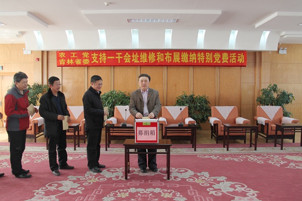 按照农工党中央《关于动员广大党员支持第一次全国干部会议会址维修和布展工作的通知》的要求,2015年3月13日,农工党吉林省委会支持中国农工民主党第一次全国干部会议会址维修和布展工作缴纳特别党费(捐款)活动在省委会机关举行。农工党吉林省委会副主委李其春、秦海涛,在长的部分党员以及省委会机关工作人员出席了活动。