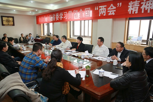 周然要求,要结合目前开展的社会主义坚持和发展中国特色社会主义学习实践活动,把学习全国“两会”精神抓紧抓好,紧紧团结在以习近平为总书记的中共中央周围,积极参政议政,切实履行参政党职能。