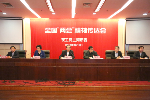 3月19日下午,农工党上海市委会在民主党派大厦六楼多功能厅召开全国“两会”精神传达会。全国政协常委、农工党中央副主席、农工党上海市委主委蔡威出席会议并讲话。市委专职副主委金如颖主持会议。