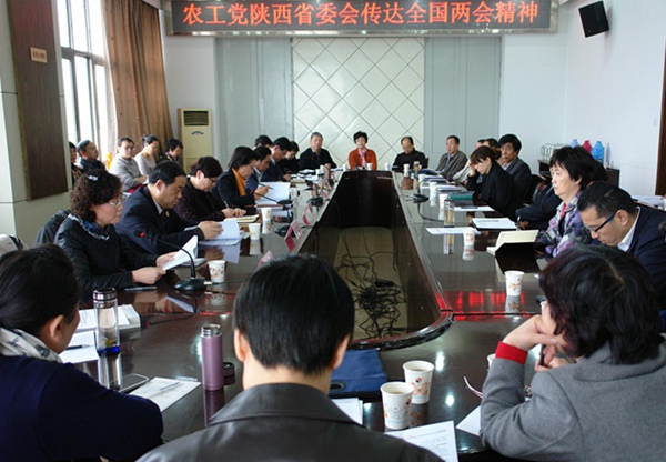 全国人大代表、省委会委员、陕西安帝源生物科技制药有限公司董事长郭汶霞,全国政协委员、省委会常委、陕西省人民检察院副检察长巩富文分别传达了十二届全国人大三次会议和全国政协十二届三次会议精神。